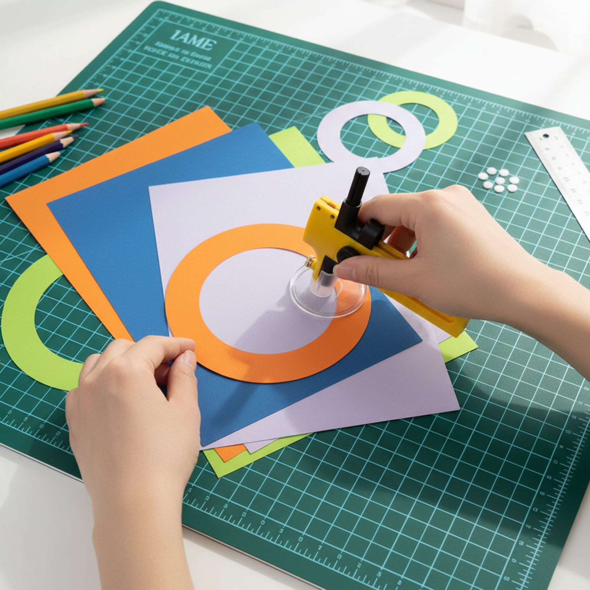 3. Adjust the ruler to your desired circle diameter (10-150mm)